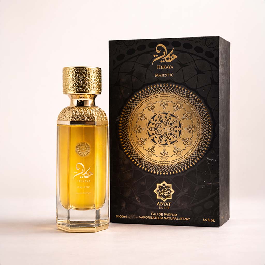 Abyat Elite Hekaya Majestic opens with a bold blend of nutmeg, cinnamon, cardamom, and grapefruit — lively yet grounded. At its heart, calming lavender brings a refined masculine elegance, while the deep base of licorice, sandalwood, amber, white musk, patchouli, and Haitian vetiver creates a warm, lasting trail that feels both commanding and sophisticated. Designed for the man who carries presence with purpose, Hekaya Majestic is a signature scent that stands apart with depth and distinction.